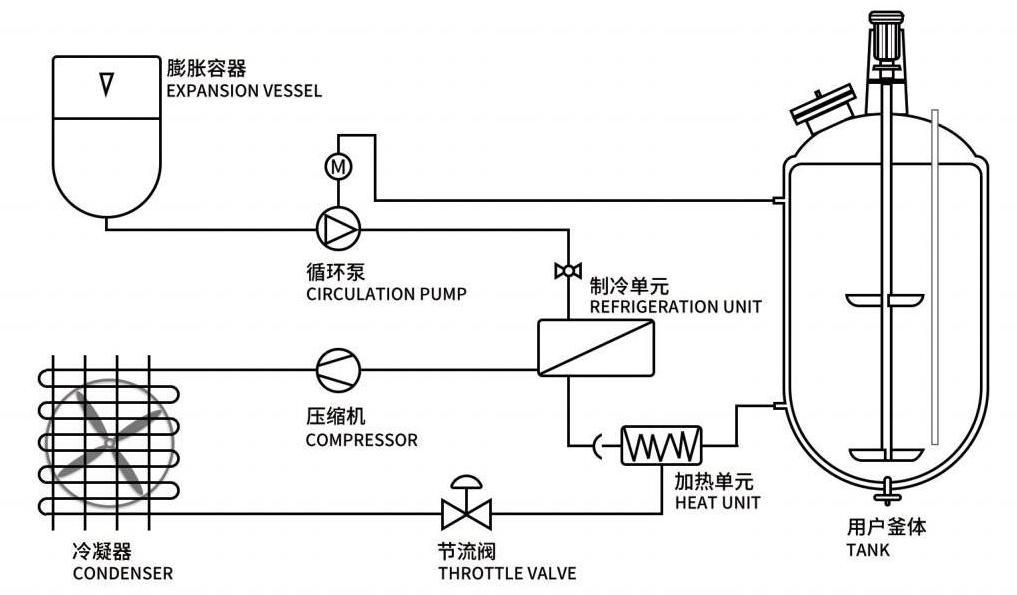 高溫300度高低溫一體機又叫、高低溫循環泵、加熱制冷一體機、高低溫循環一體機,是專門給反應釜做升降溫用,循環系統的導熱介質是全密閉循環,循環系統帶有液體膨脹容器,膨脹容器和液體循環是獨立系統,膨脹容器并不參與液體循環,只是機械的連接。就算高溫運行的情況下,膨脹容器中的導熱介質都不會高于50度。 整個液...